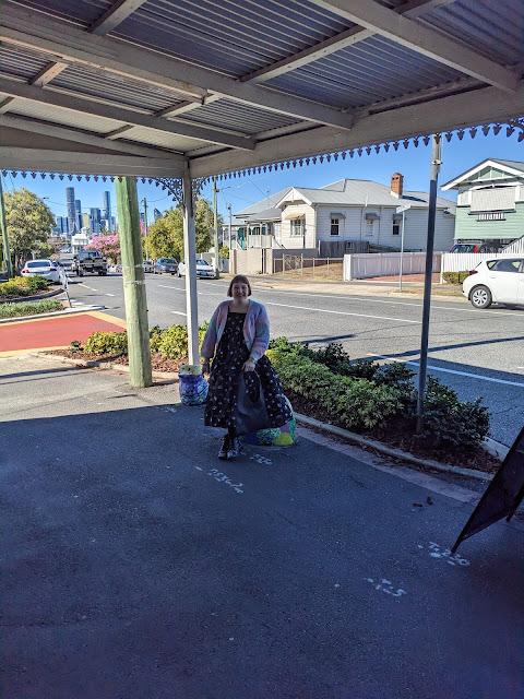 A few quick little outfit pictures outside one of my favourite stores in Paddington - Thousand Island Dressing - which stocks absolutely amazing jewellery pieces, as well as bags, clutches, scarves, headpieces & even some homewares! I'm posing next to these funky "street art" painted kookaburra sculptures along LaTrobe Terrace wearing a beautiful black, lavender & duck egg blue floral jacquard puff sleeve midi dress with tie back detailing from whimsical British label Sister Jane's premium diffusion line, Dream Sister Jane, a cosy pastel lavender, blue & pink knitted wool cardigan from Kmart (hot tip - look in the children's section for oversized knits as they make great cropped knits for adults) to ward off the chill in the air, a pair of black matte leather biker boots with white "graffiti" style embroidery from Wittner, 40 denier black nylon tights from Razzamatazz & a black vinyl triangular-shaped shoulder bag from French Connection that I picked up at my local TK Maxx store for the bargain price of $30. When it came to jewellery, I donned a silver vintage bangle that my brother gifted me from 20th Century Antiques & Collectibles & a stack of vintage Mexican silver bangles that some dear friends sent from overseas.