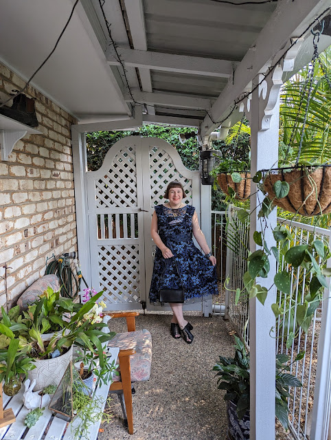 Black & pink is always a winning combination! Dressed up for a styling job in a beautiful black & pink floral embroidered mesh fit-to-flare midi dress from celebrated Australian label Anthea Crawford that I cinched in with a satin obi-style belt from Sacha Drake, a pair of baby pink leather lace-up pointy-toed heels from Wittner with matching baby pink vinyl shoulder bag with silver chain strap from Forever New & gorgeous silver accessories in the form of a chunky, art deco wave hinged bangle from Precious Stones Jewellers & a thin silver hinged bangle from Oxfam that I've had since my grade 12 formal.