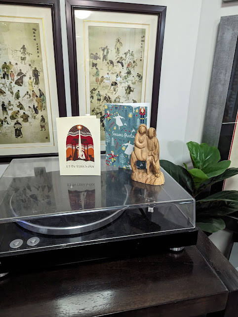 Finally sharing all the beautiful pictures from our family Christmas dinner "do over," now that we're all healthy & happy after our recent bout of Covid. For the occasion, I wore a cute yet casual white linen singlet with embroidered yoke detailing & a pair of white & green floral print cotton shorts with belt from my local Target store's Preview summer line, styled up with beige leather Frankie 4 sandals with gold buckles & matching vintage gold, white & clear glass beaded necklace & bracelet with swirl pendant from the delightful Beautiful Pangea.
