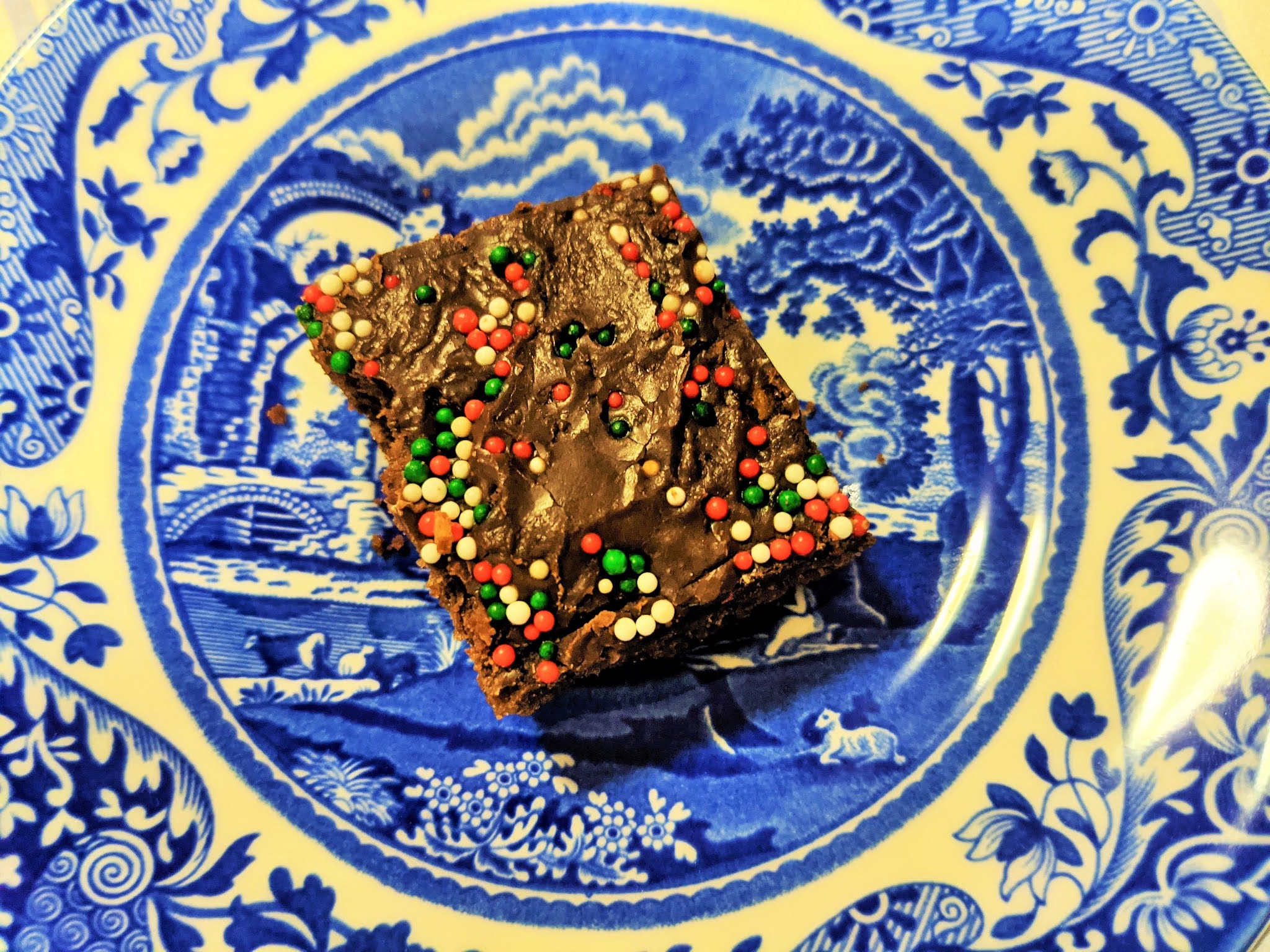 Chocolate Slice with a Festive Twist (note the red & green sprinkles) from the neighbours...