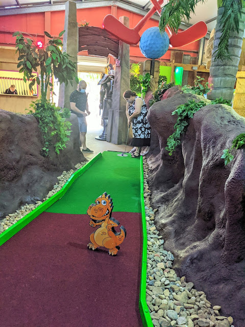 Keep scrolling to see pictures of us taking on our second indoor mini golf course...