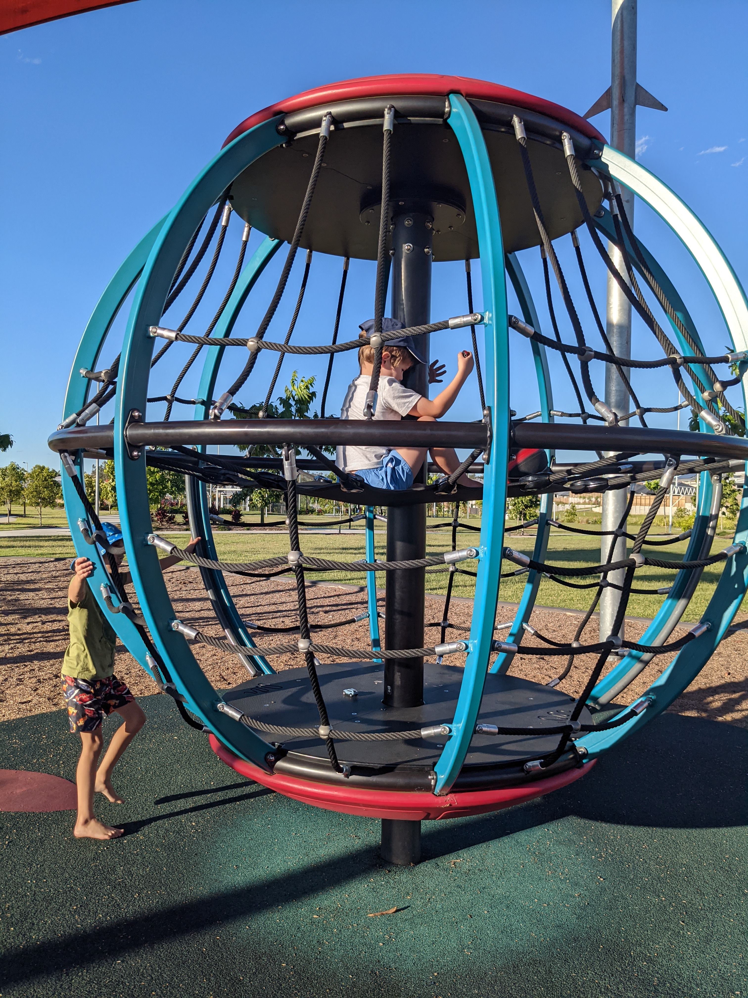 Living that parklife with my cousin & her two rambunctious munchkins in a bright & happy pink printed cotton empire-line smock dress with ruffled sleeves & tie detailing from Labels of Love, black patent leather Birkenstock sandals, black vinyl & woven satin handbag from Country Road & sea print cotton bucket hat from Princess Highway to keep the sun off my face.