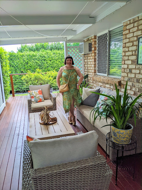 Thinking back on sunnier, warmer days in sweet, bohemian shift dresses like this gorgeous green & gold floral printed eco vero number with shoestring straps & front split from hippie-luxe label Nine Lives Bazaar, styled up with a pair of soft gold vegan leather deco heels from Kitten D'Amour for a modicum of height, a natural woven straw handbag from my local H&M store to carry all the essentials, a chunky maple wood watch with silver accents from Montville Woods Gallery & finally, a vintage silver bangle for that finishing touch of daytime shine.