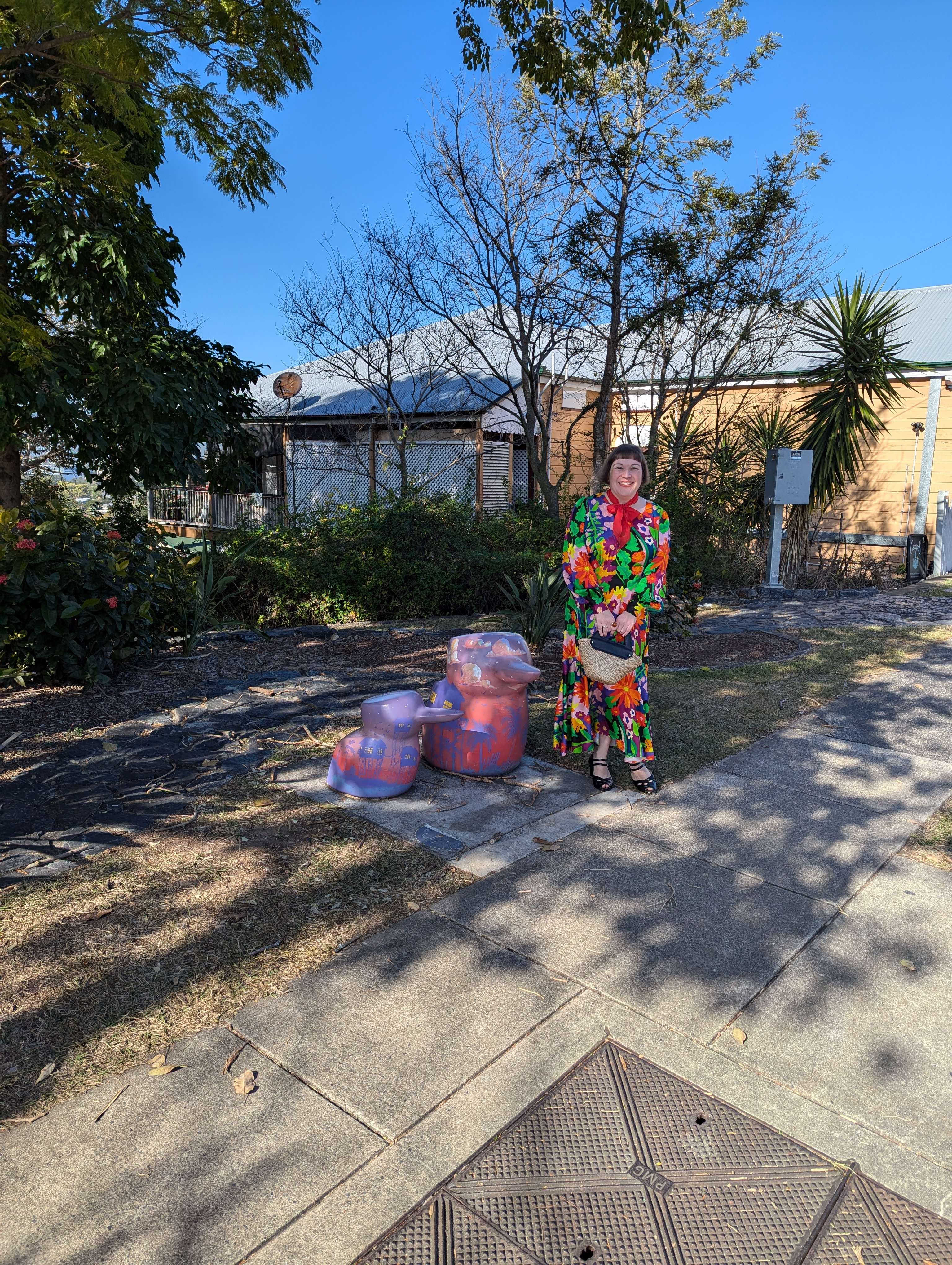 You know how sometimes a dress comes along in a print that just makes you feel happy? Well, the gorgeous Suncatcher Flare Dress from cult label Gorman is just that dress! The stunning floral pattern coupled with the sumptous silky viscose/lenzing fabric & amazing midi-length bias cut is literally what sartorial dreams are made of & I've styled it up here for a morning in Paddington with a pair of black vegan leather dual buckle heels from Kitten D'Amour for a modicum of height while remaining comfortable, a black leather & natural woven straw handbag from Witchery to carry all the essentials while adding a bohemian/luxe touch, a jaunty little red chiffon scarf that I picked up at a sweet local boutique called Temptations & finally, my beautiful new silver & amber ring from the lovely ladies at Precious Stones Jewellers in Uptown to complete the look.