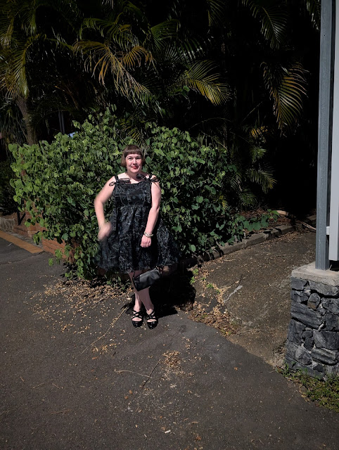 I'm so elated to be posting some snippets from a recent family birthday celebration dinner at the always amazing Creole Soul Kitchen in Spring Hill. For the occasion, I wore the funky "Aura Dress" from Dangerfield - a sweet little mini dress with tiered hemline & tie straps, made from crisp organza & covered in neon-lit pictures of nocturnal animals - styled up with a pair of black vegan leather strappy heels with buttons from Kitten D'Amour for a modicum of height, a cylindrical black vinyl handbag from Beach n Beyond boutique at Coolangatta to carry all the essentials, my beloved stack of vintage Mexican silver bangles that some friends brought back from a trip & finally, a single jade bangle from the Shanghai Markets that my brother brought back from a trip years ago to complete the look & pick up on the green inherent in the dress' print.